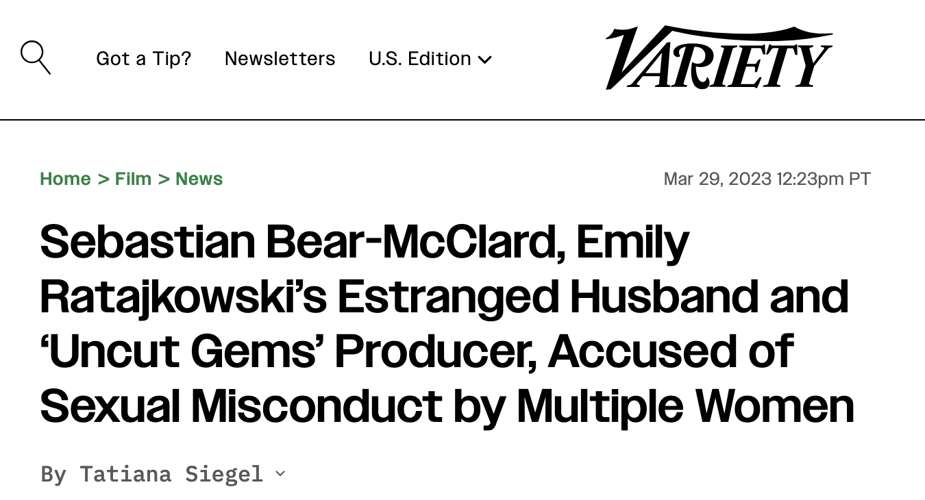 Then, in March 2023, I reported for Variety on the behind-the-scenes drama of Ratajkowski’s split from Bear-McClard, which included some of the details from the “Good Time” incident including the girl’s age. It was the final straw for Benny, who swiftly ended his creative partnership with his brother, insiders say.