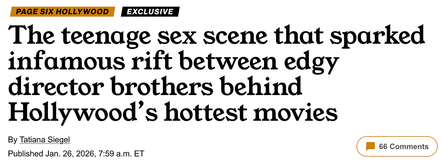 It doesn’t take much to trigger the media when Oscar is upping the value of click bait. Tatiana Siegel, who has segued from PenskeVille to MurdochVille did her classic shit-stirring routine on Marty Supreme. Zzzzzz…